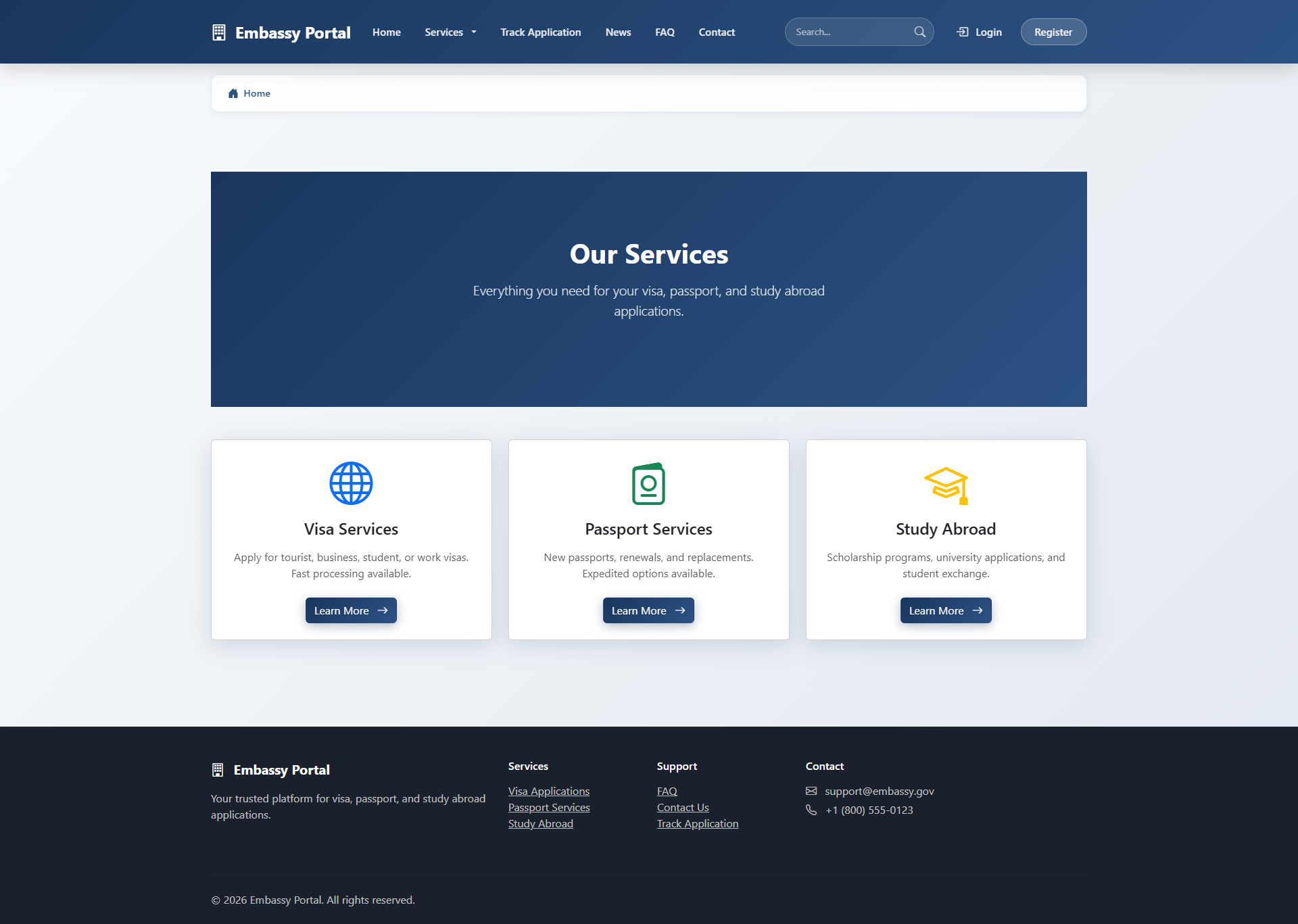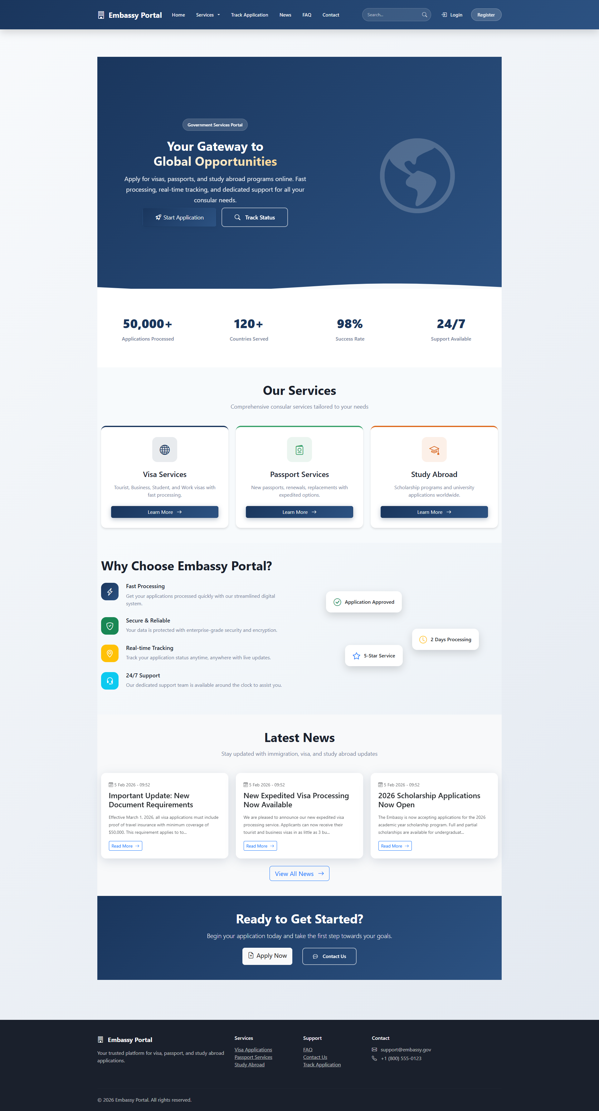 This website provides an online system for managing visa applications, passport services, and study abroad program applications. The platform supports digital submission, document management, application tracking, and administrative processing in a single system.