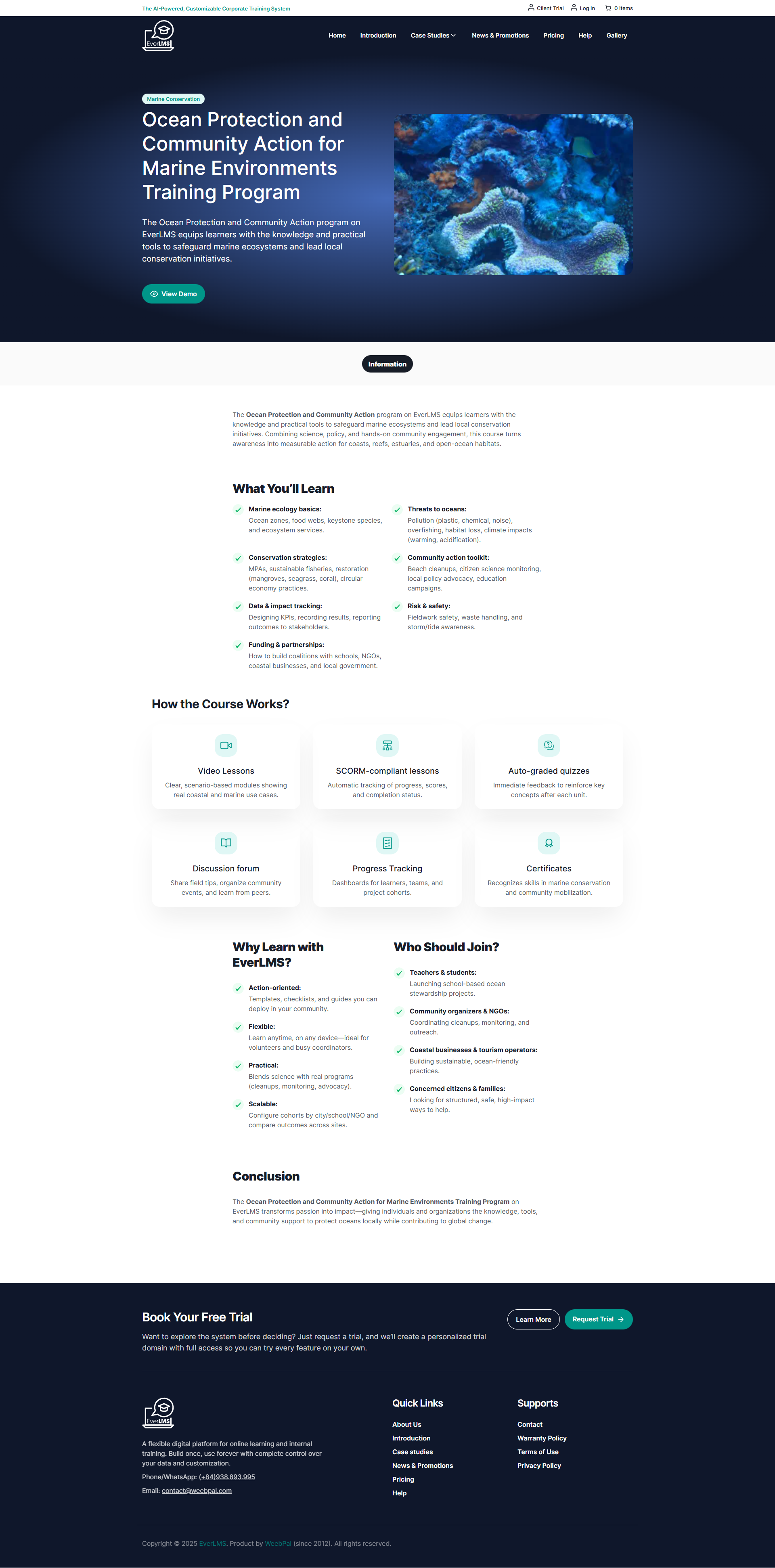 EverLMS provides a set of modules for managing online learning content, learners, and course delivery.