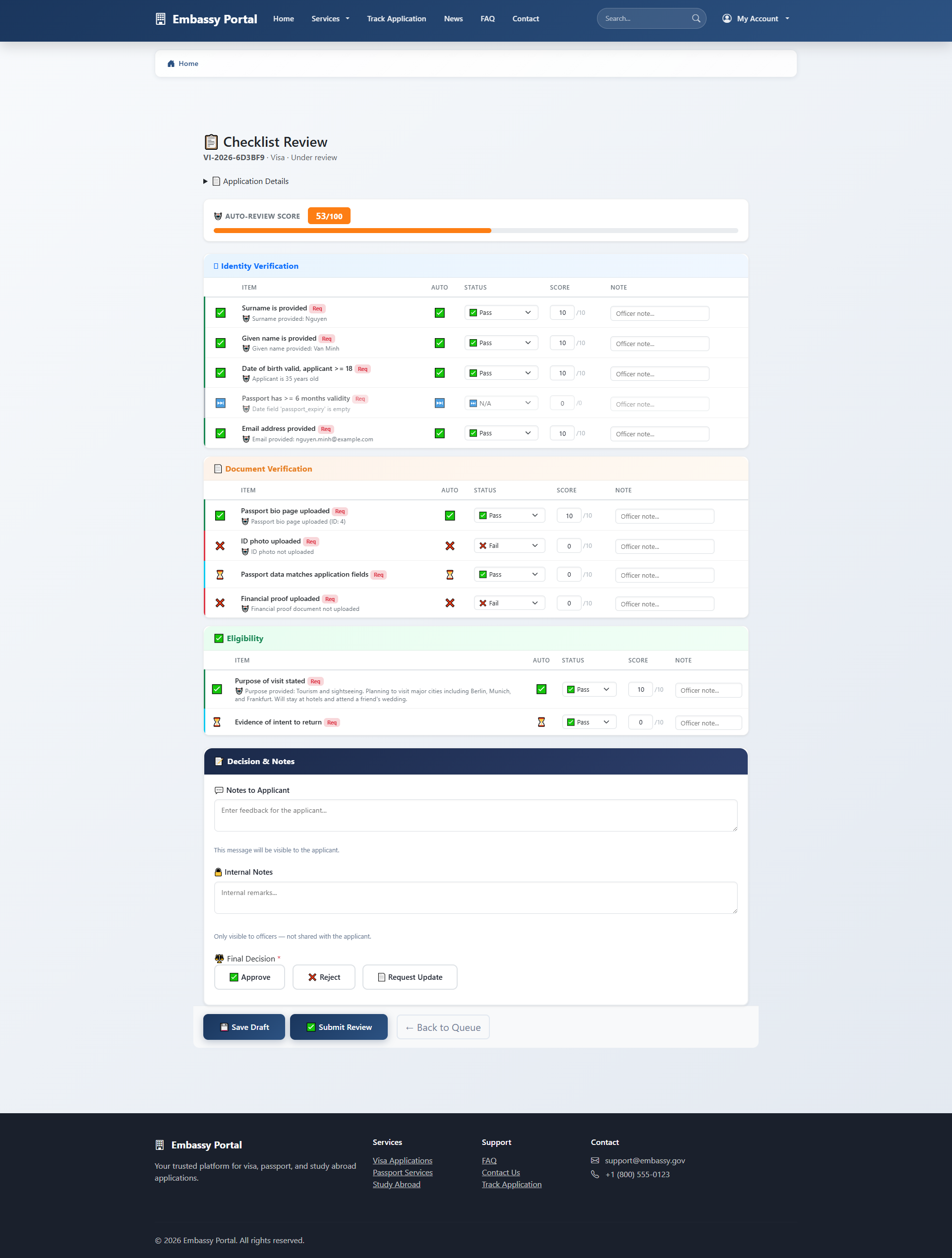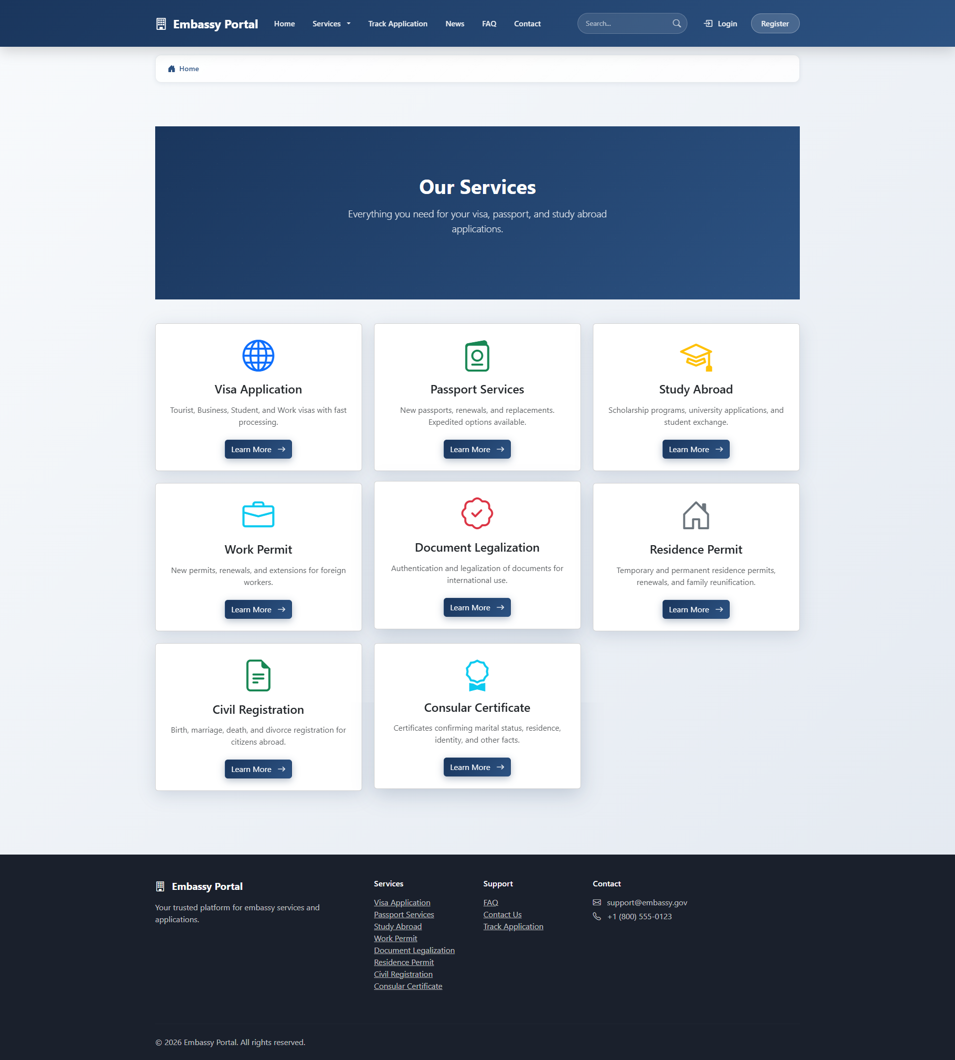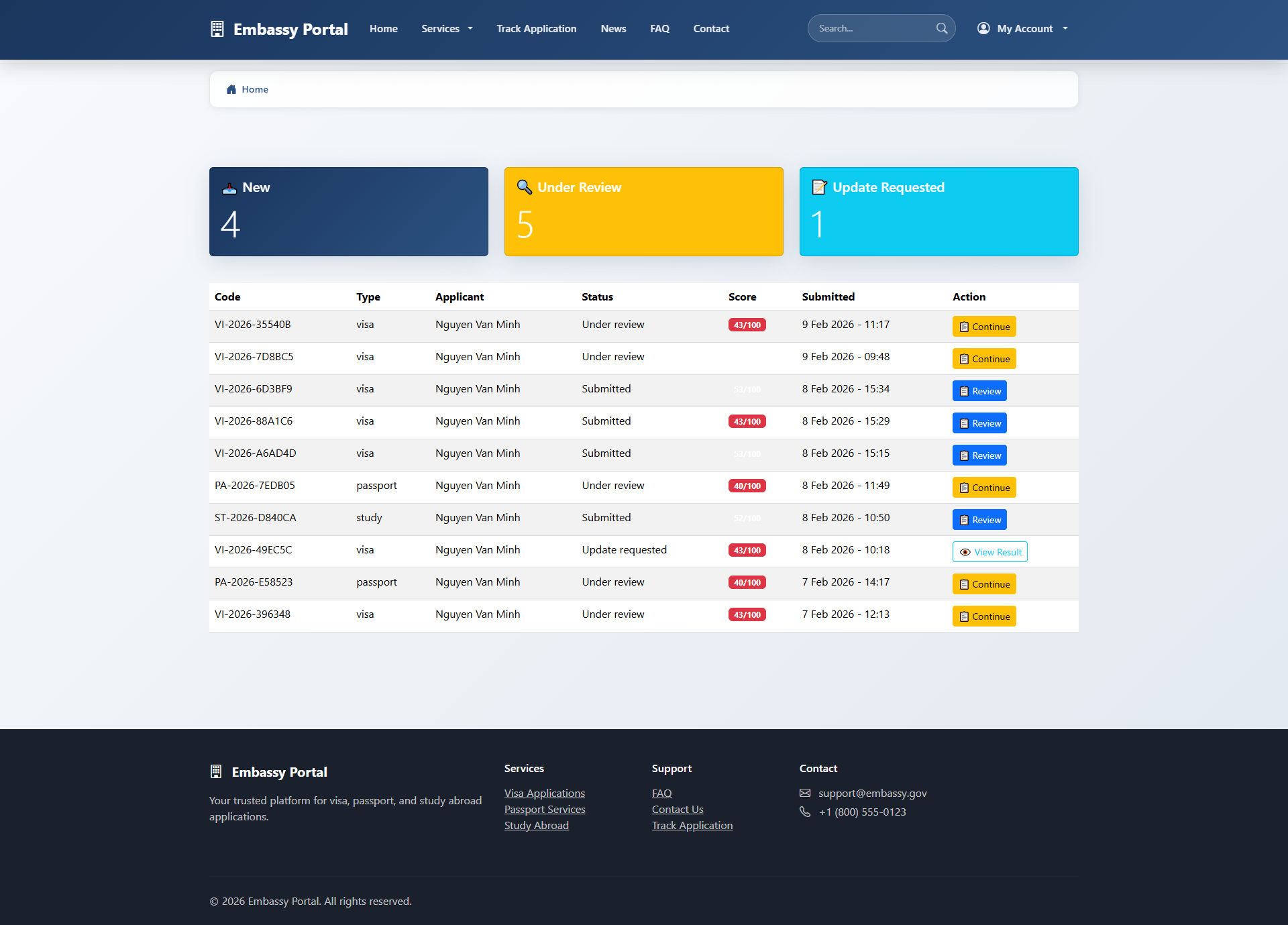 This website provides an online system for managing visa applications, passport services, and study abroad program applications. The platform supports digital submission, document management, application tracking, and administrative processing in a single system.